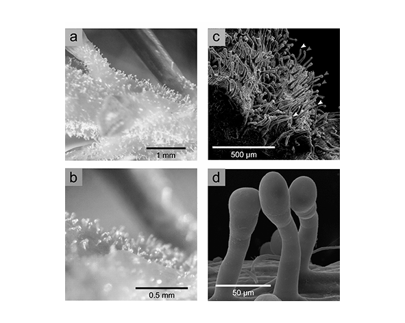 En el contexto de Cannabis sativa, el α-pineno es uno de los terpenos más frecuentemente detectados en los tricomas glandulares, donde coexiste con cannabinoides y otros compuestos volátiles. Su presencia contribuye al perfil aromático de determinadas variedades y forma parte del conjunto de metabolitos secundarios implicados en la interacción de la planta con su entorno. (Booth & Bohlmann, 2019; Russo, 2011).
