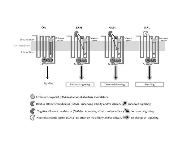 Uno de los mecanismos propuestos para explicar el efecto séquito es la modulación directa de receptores cannabinoides. Algunos fitocannabinoides pueden actuar como agonistas parciales, antagonistas o moduladores alostéricos de CB1 y CB2, alterando la afinidad o la eficacia de otros ligandos presentes en el mismo entorno. Por ejemplo, el cannabidiol (CBD) ha sido descrito como un modulador alostérico negativo del receptor CB1, lo que puede modificar la respuesta inducida por el Δ9-tetrahidrocannabinol (THC) en determinados contextos (Laprairie et al., 2015; Pertwee, 2008).