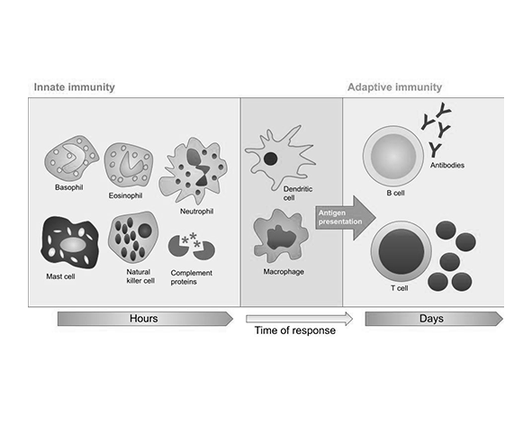 El sistema inmunitario se organiza en una red compleja y jerárquica de órganos, tejidos y células que actúan de forma coordinada para detectar y responder a amenazas, manteniendo al mismo tiempo la tolerancia hacia componentes propios del organismo. Tradicionalmente, se divide en inmunidad innata e inmunidad adaptativa, dos sistemas interdependientes que operan en distintos niveles de especificidad y tiempo de respuesta.